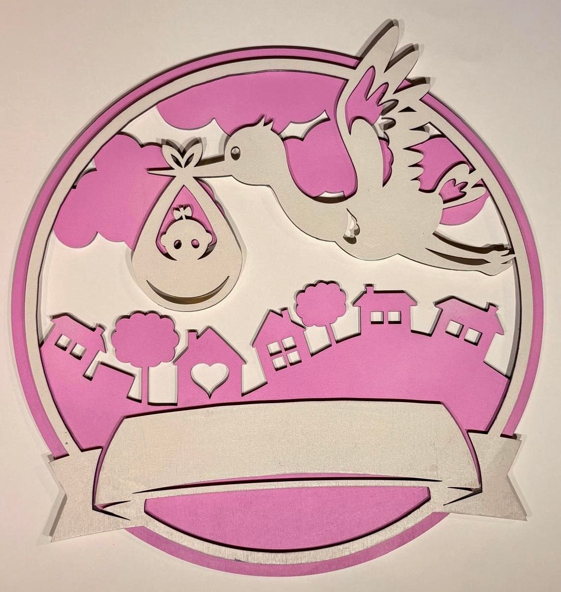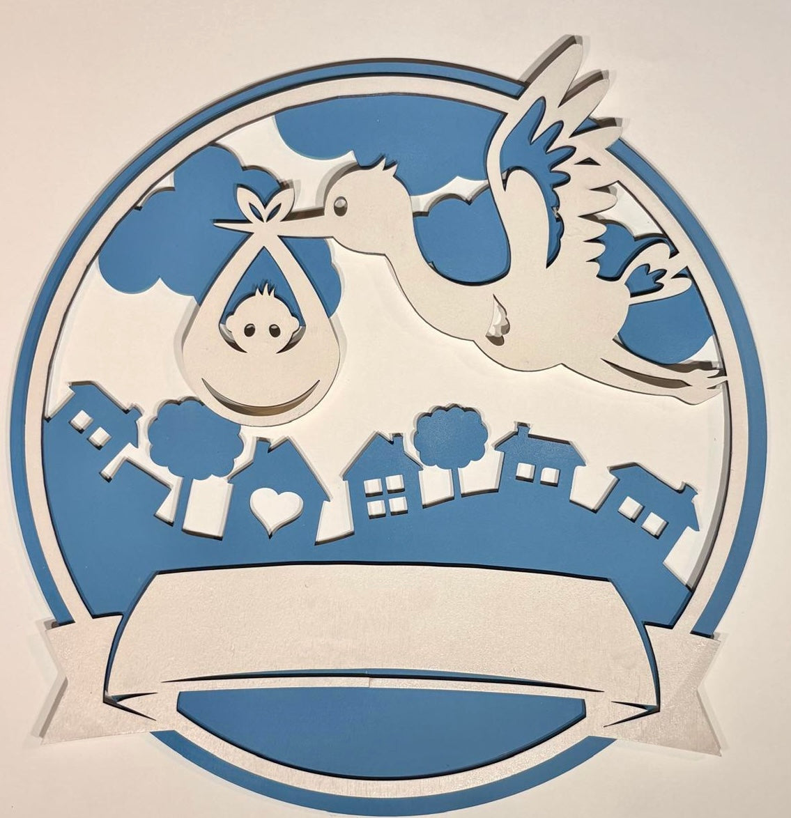 Een bijzondere en liefdevolle decoratie om de komst van een baby te vieren! De ooievaar die de baby brengt is een klassiek en schattig symbool – perfect voor de babykamer of als kraamcadeau.