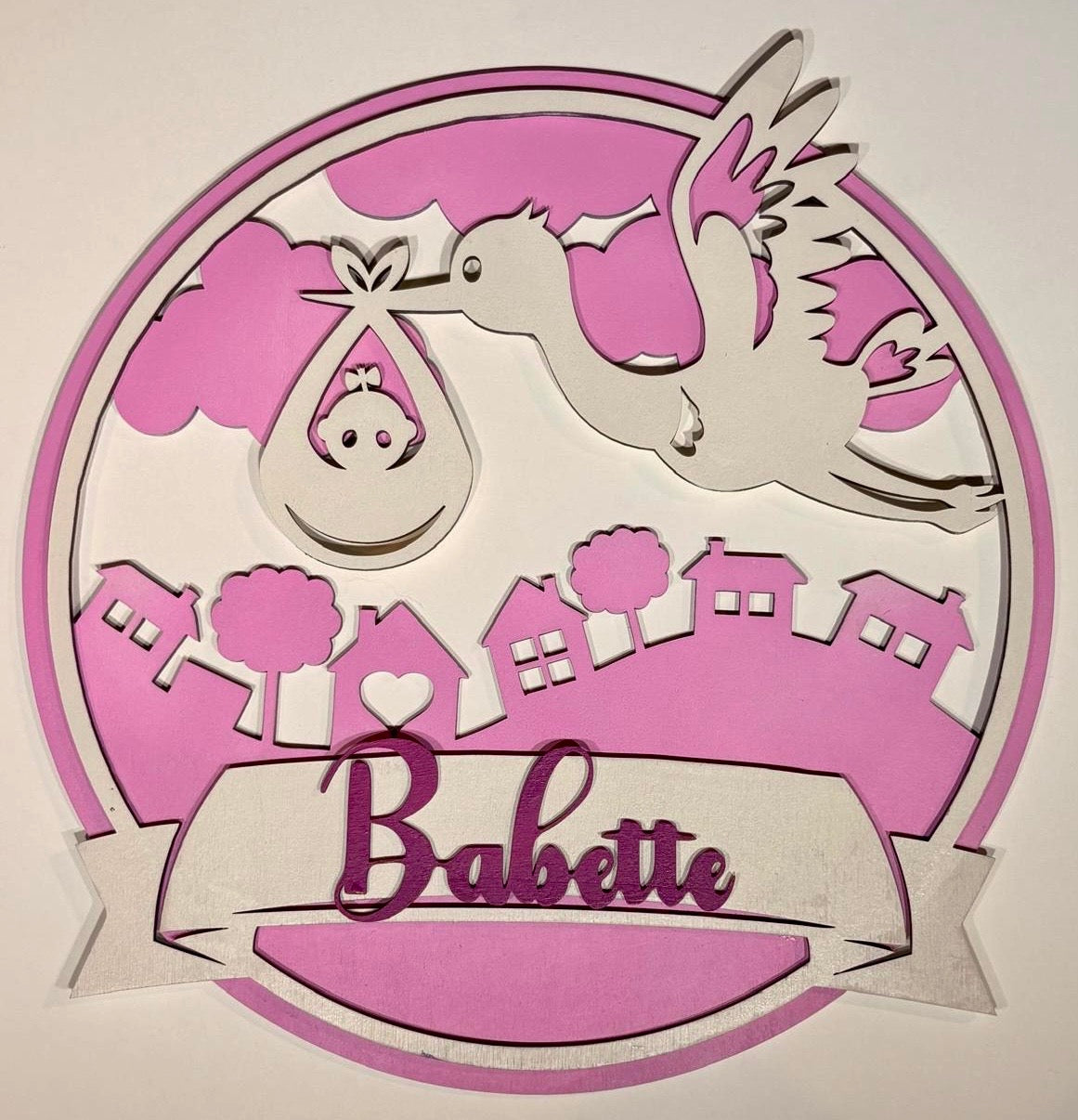 🍼💗 Gepersonaliseerd ooievaar naamplaatje – 30 cm houten wanddecoratie